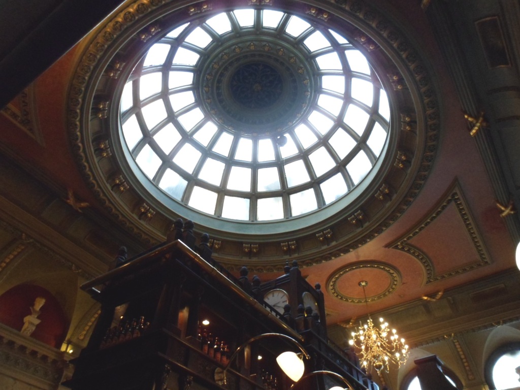 Along with its incredible décor what struck me about the place was that it offered a number of guest ales alongside the extensive variety of Fuller’s own beers. Hats off to the Chiswick brewery for this! Although I still opted for their own London Porter, a 5.4% dry, chocolatey keg beer with an almost floral aftertaste. I thought it only right to have a pie to go with my ale and opted for the shepherd’s, which was very tasty but would have benefited from a more generous filling.