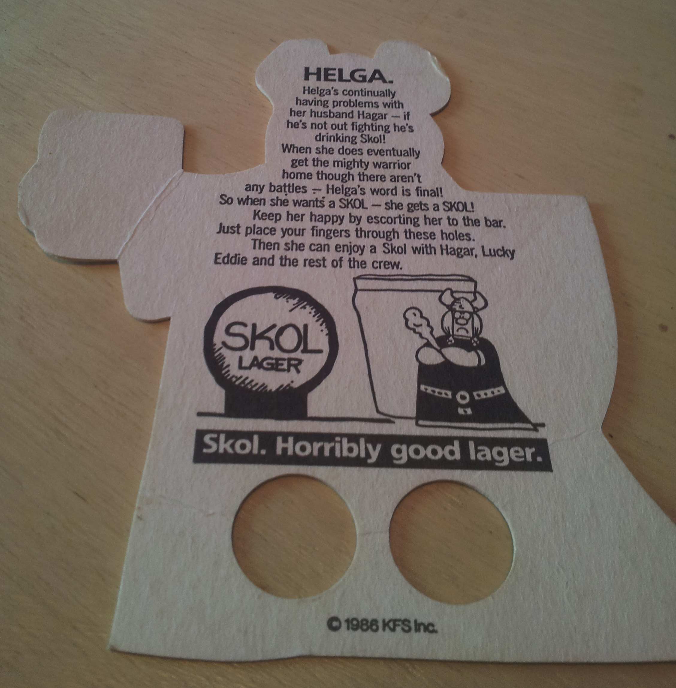 When I uncovered it I thought it was going to have some sort of nonsense on the back about Hagar getting his beer and Helga standing in the way, but it turns out, “…when she wants a SKOL – she gets a SKOL!”