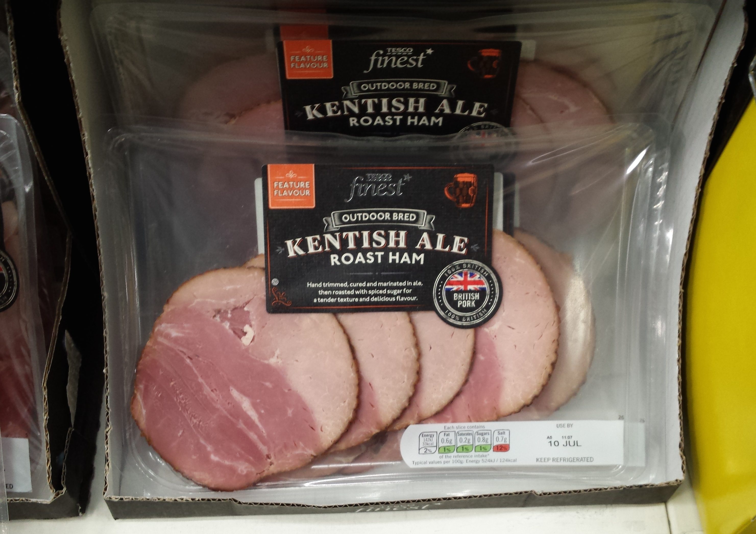 The Kentish Ale Roast Ham purports to be, “Hand trimmed, cured and marinated in ale, then roasted in spiced sugar for a tender texture and delicious flavour.” Beer is clearly listed among the ingredients but it doesn’t specify what sort of beer.